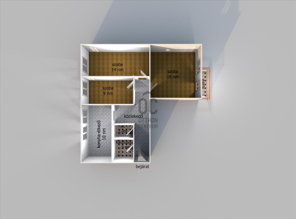 - 3 szoba, konyha étkezővel, fürdőszoba, wc