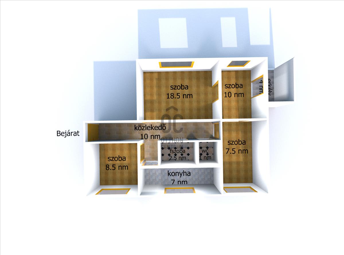 - 3 +1 szoba, konyha -étkezővel, zuhanyzós fürdőszoba külön wc, a folyosón beépített szekrény