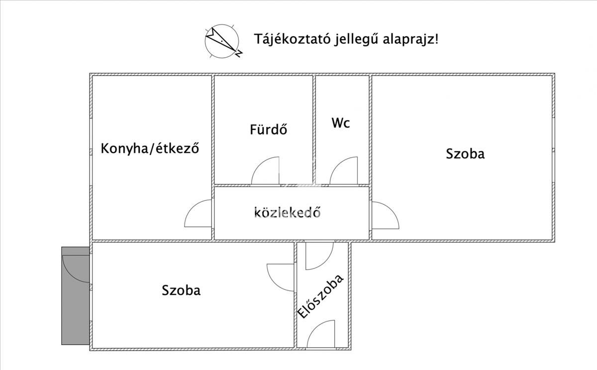 - 1 egész szobából, 1 félszobából, előszobából, konyhából/étkezőből, fürdőszobából, valamint WC-ből áll.
