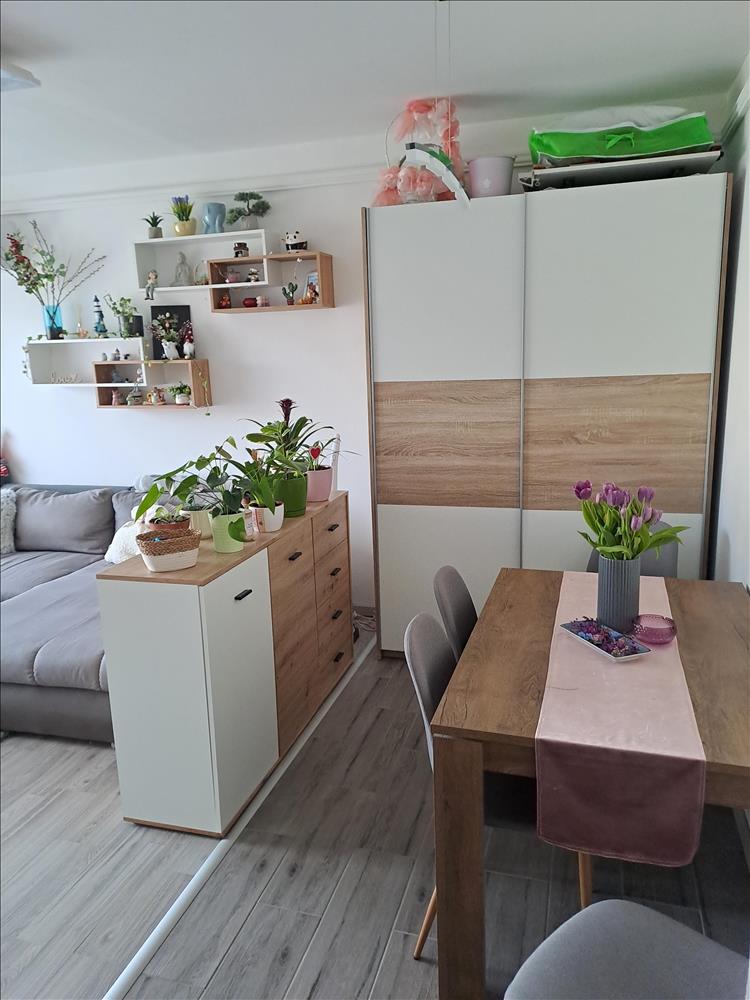 Elosztás: Nappali + 1 hálószoba (ideális elrendezésű 1, 5 szoba)