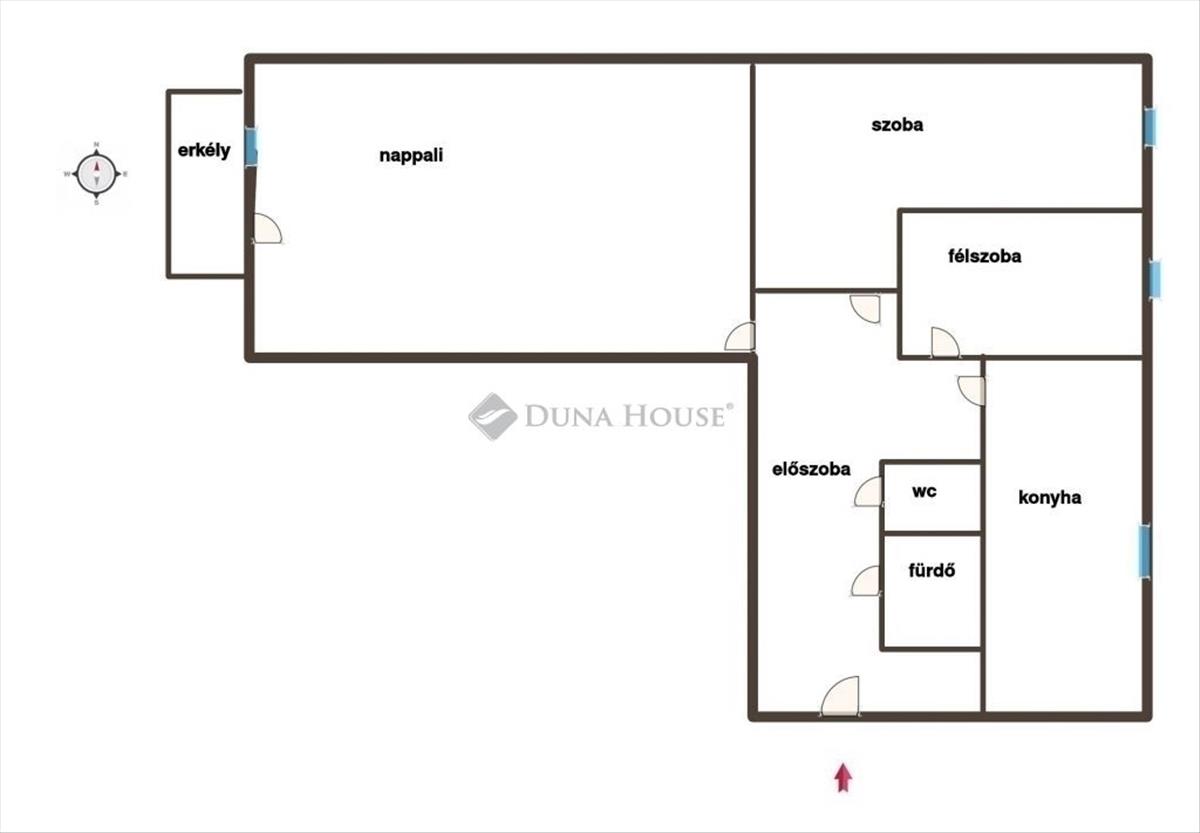 62 m² 2+½ szoba 4. emelet erkélyes lakás eladó