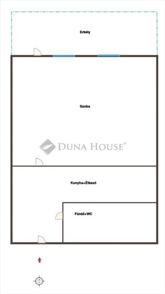 Helyiségek: szoba, konyha, zuhanyzós fürdőszoba WC-vel, erkély