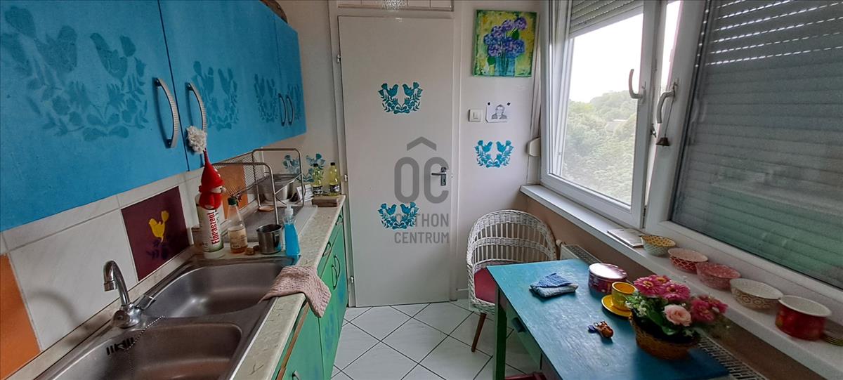 A lakás kiváló elosztású, 2 nagyobb és 2 kisebb szobával rendelkezik, melyek közül három laminált padlóval, míg a többi helyiség és a loggia pedig járólappal burkolt. a konyha mellett egy praktikus kamra is helyet kapott. a fürdőszoba káddal mosdóval felszerelt, illetve a mosógép csatlakozás is rendelkezésre áll. . a különálló wc további kényelmet biztosít a lakók számára.