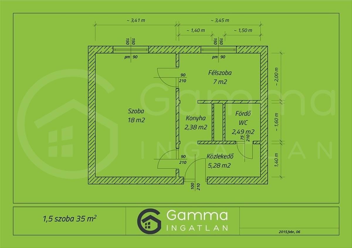 • Szobák laminált lappal, az előszoba és a konyha hidegburkolattal fedettek.