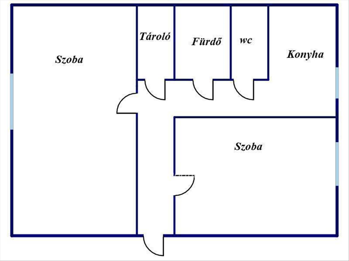 Tágas, külön nyíló szobák praktikus elosztás, jó helykihasználás.
