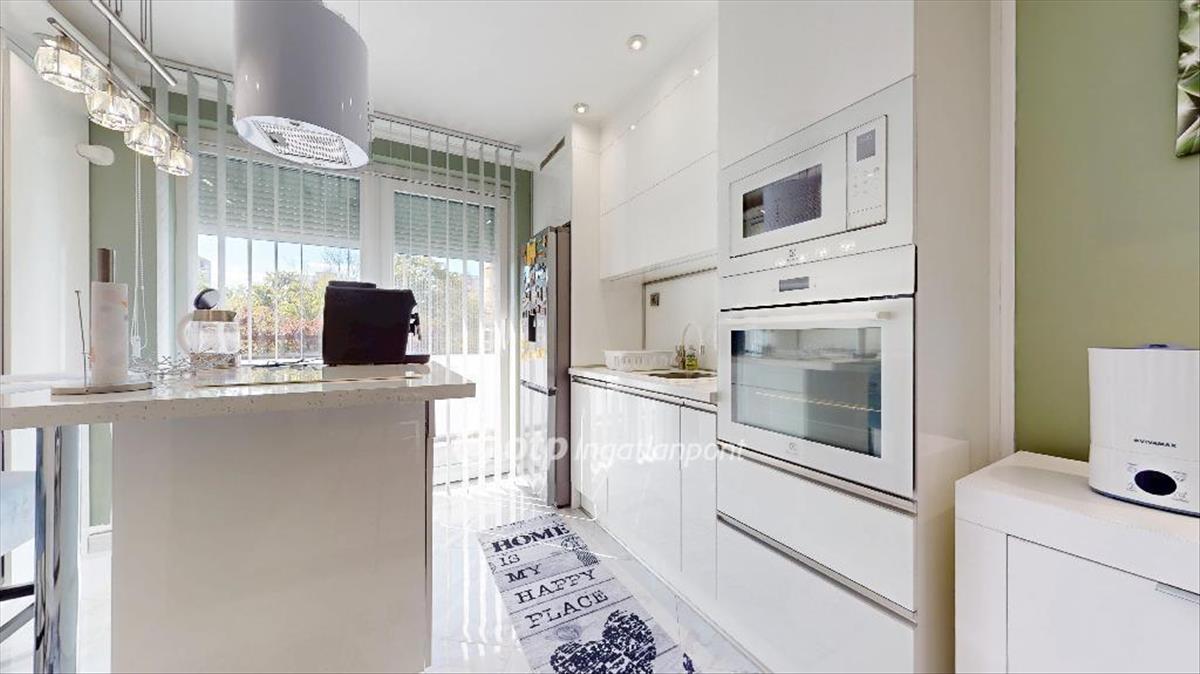 A konyha konyhaszigettel, Electrolux indukciós főzőlappal, beépített sütővel, mikróval, hűtővel és páraelszívóval van felszerelve, valamint aeg mosógép is tartozik hozzá. a teljes bútorzat és háztartási gépek a vételár részét képezik, így az ingatlan azonnal költözhető.