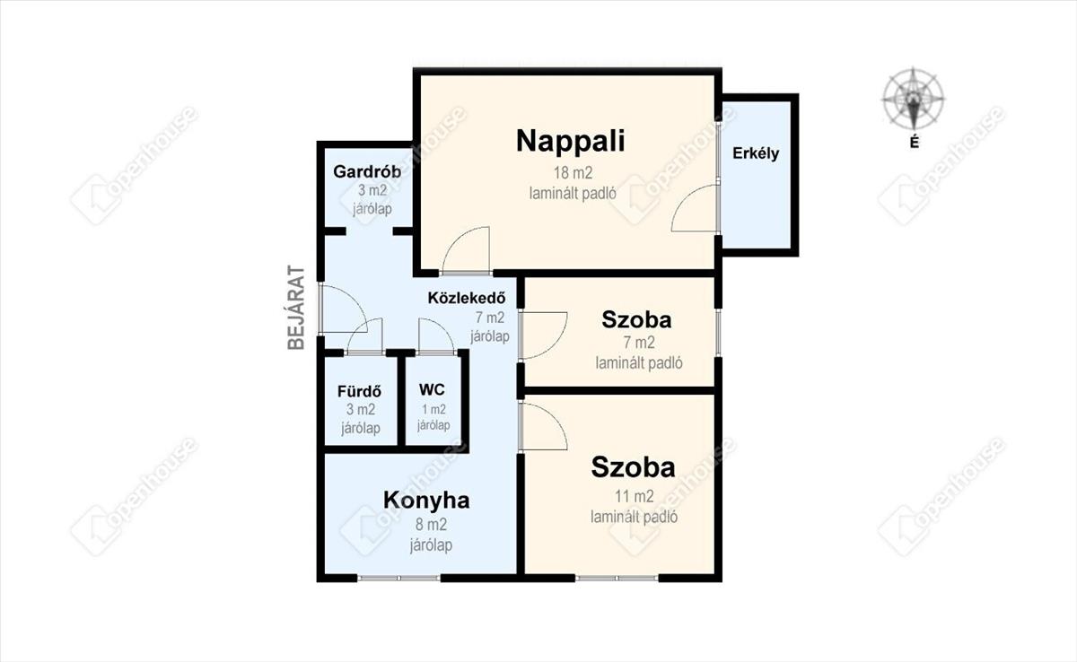 - a szobák laminált parkettával, minden egyéb helyiség járólappal burkolt
