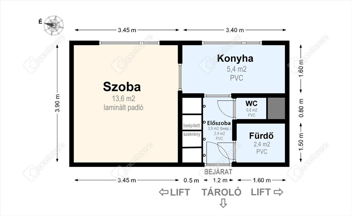 - a szobában laminált padló, minden egyéb helyiségben jelenleg pvc található