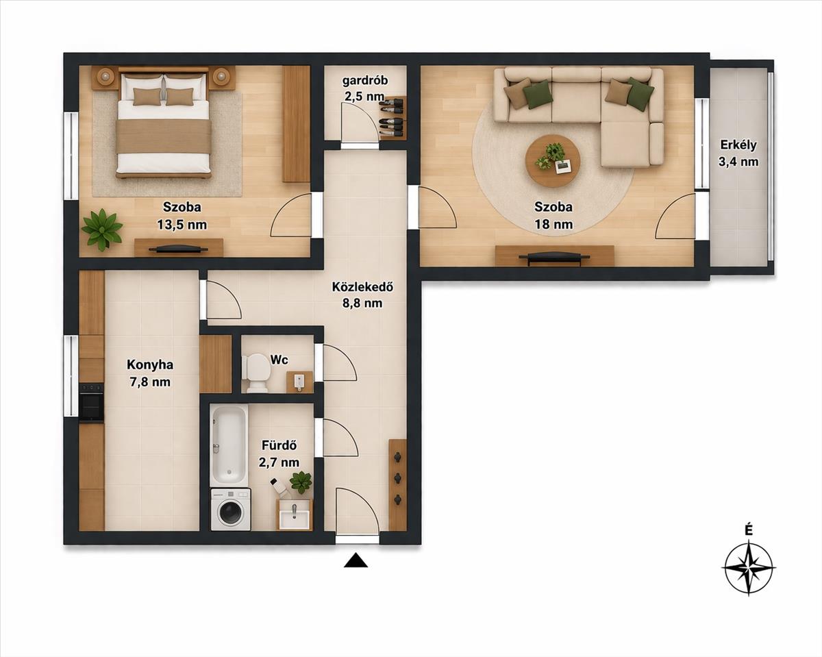 - Tájolás:nincs megadva