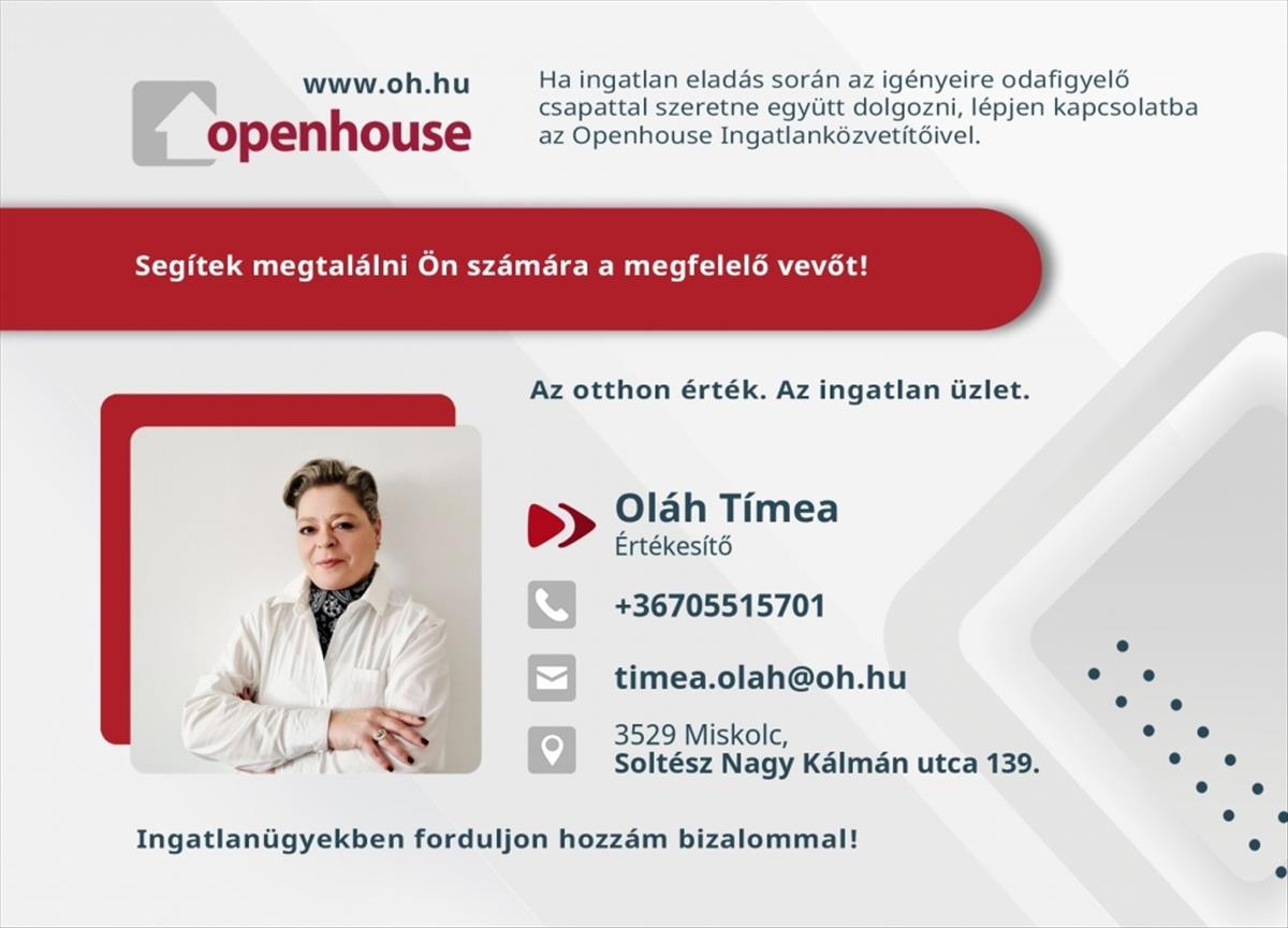Az eladó lakások menüpontban további hirdetések között is böngészhetsz. Ha van kedved, akkor böngészhetsz a Oláh Tímea összes hirdetése között, vagy akár a/az Open House Openhouse Miskolc Soltész Nagy Kálmán utcai Ingatlaniroda összes hirdetése között is.