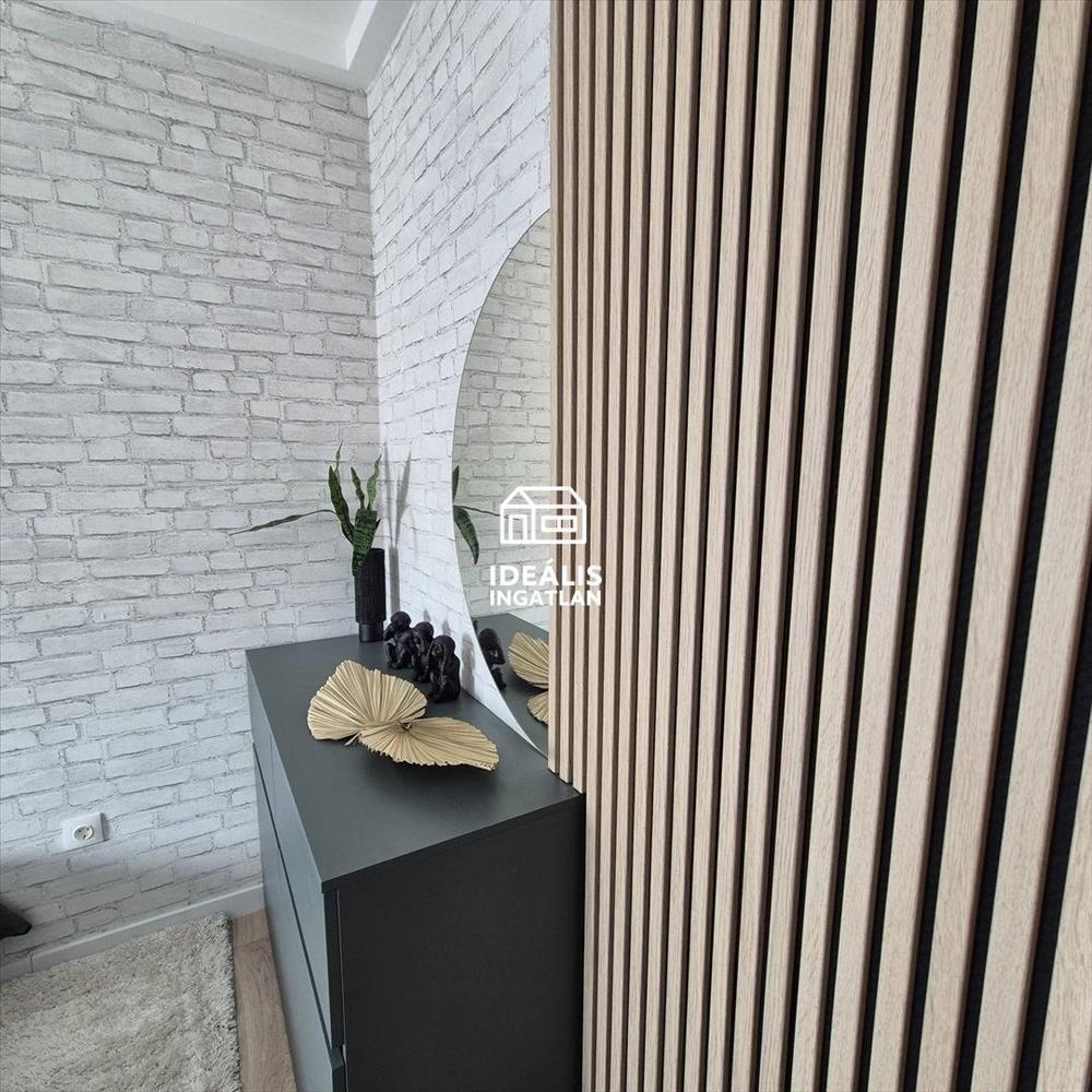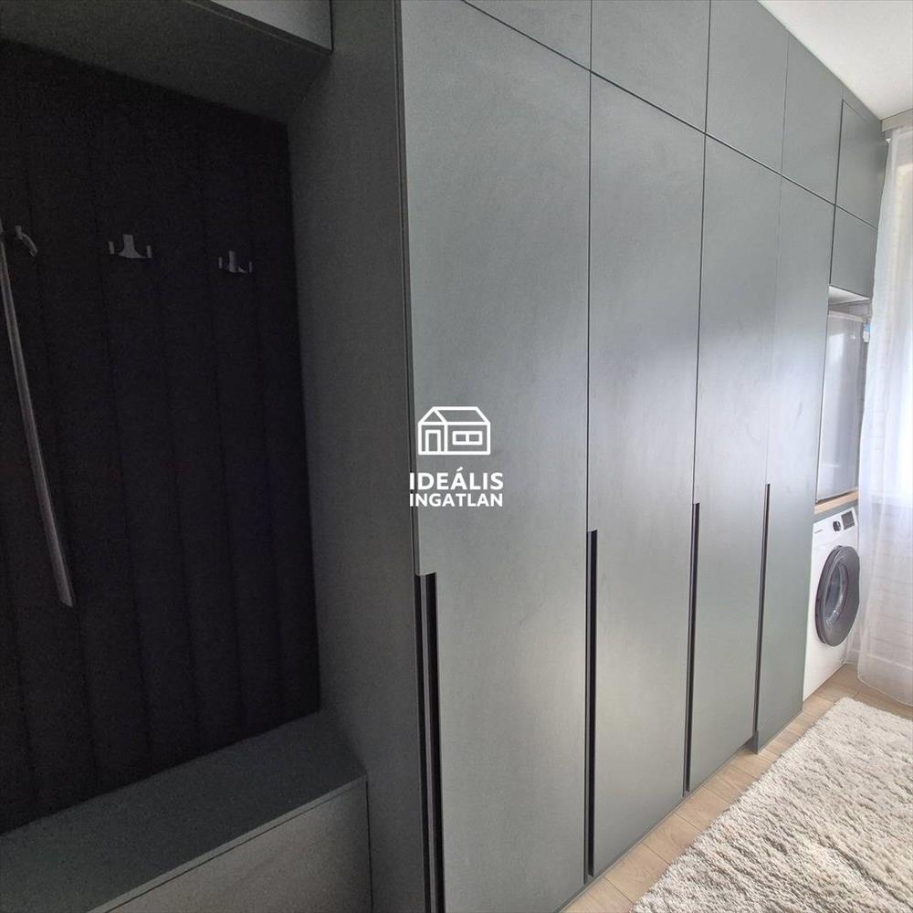 Az ingatlan teljes műszaki és esztétikai megújuláson esett át, ahol minden apró részlet tudatos tervezés eredménye. a lakás egyik különlegessége a helyiségek között egységesen végigvezetett vinyl padló, amely nemcsak modern és tartós, hanem vizuálisan is tágítja a teret, megszakítás nélküli, harmonikus összképet teremtve. Az egyedileg tervezett konyha, előszobabútor és hálószobabútor tökéletes egységet alkot, a konyha áthelyezésével pedig egy kifejezetten jól használható, átgondolt tér jött létre, amelyet a beépített gardrób tesz teljessé. a lakásban minden beépített bútor egyedi gyártású, asztalosmester munkája, ami tovább erősíti az ingatlan exkluzivitását.