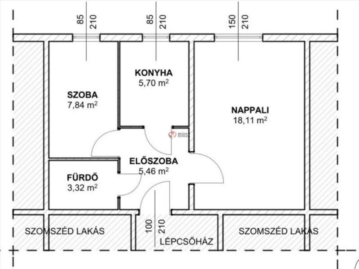 Az átgondolt elrendezésű ingatlanban előszoba, fürdő WC-vel, konyha, valamint egy tágas nappali és egy félszoba található, így akár egyedülállóknak, pároknak vagy kisebb családnak is ideális.