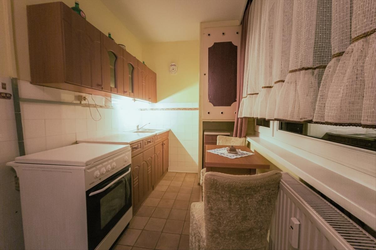 A lakás az egyik ilyen társasház kellemes, felújított lépcsőházában, annak legfelső, IV. emeletén található. Lift nincs a házban, ebben a magasságban cserébe forgalom is alig, a napi lépcsőzés pedig kiváló állóképességhez és hosszú távú egészséghez segíti hozzá az itt lakókat. a panelprogram keretében elvégzett munkálatok során a lakás új, műanyag nyílászárókat kapott, melyek ma is jó állapotúak. a távfűtés egyedi mérőkkel ellátott, radiátoronként külön szabályozható. Ezeknek köszönhetően az ingatlan kedvező, alacsony rezsiköltségek mellett lakható. a klasszikus két szoba-hallos kialakításon történt változtatás, a nagyobb szoba hallal való egybenyitása, melynek következtében a helyiség tágas nappaliként funkcionál. a konyha már járólapos, a konyhabútor is kicserélésre került. Ezeken kívül a lakás nagyjából az eredeti állapotot tükrözi. További felújítással könnyen egyedi igények szerint alakítható, de akár azonnal is költözhető. a lakáshoz az alagsorban külön zárható bejáratú privát tároló tartozik.