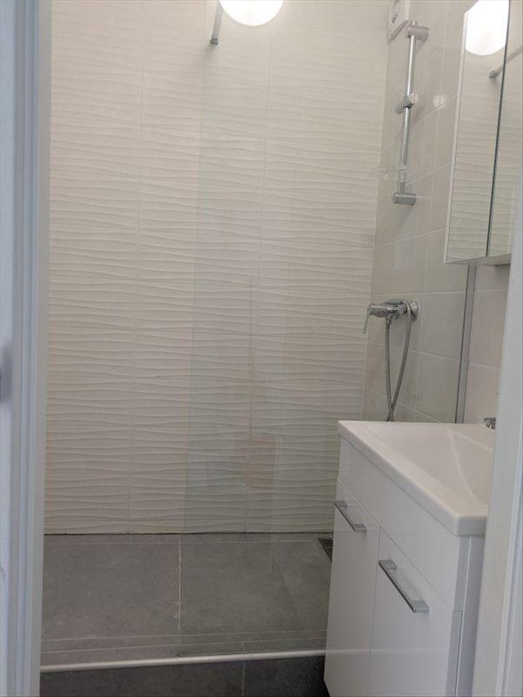 Teljes körű megújulás: a felújítás során modern burkolatokat, új belső ajtókat és egy igényes, épített zuhanyzós fürdőszobát alakítottak ki.