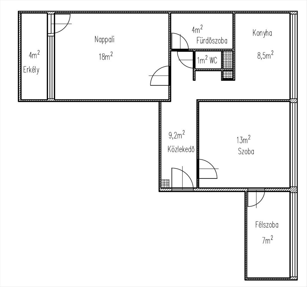 - 62 m2-es, 2 plusz egy fél szoba, konyha, külön fürdőszoba wc és erkély