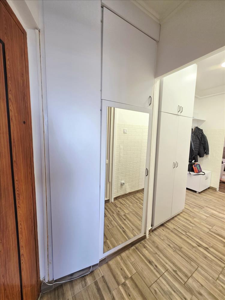 - illetve a közlekedő tükrös szekrénye, a benne lévő szárítógéppel.