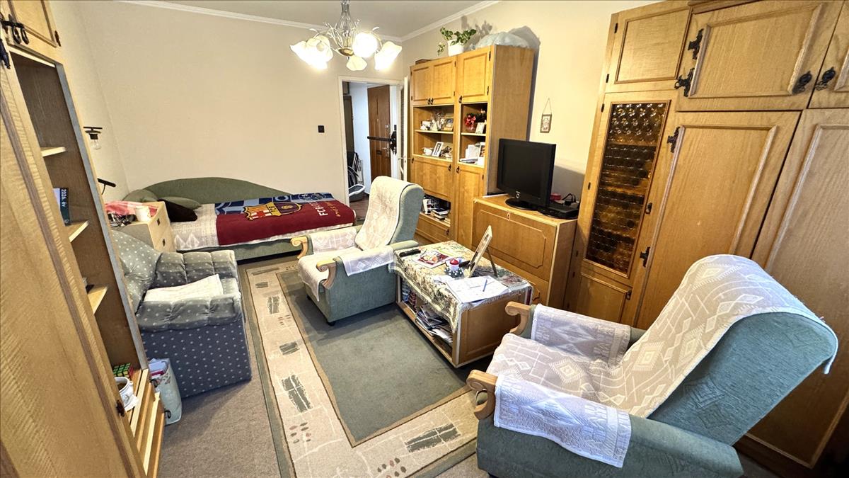 Elosztása: közlekedő, 2 szoba, nappali, konyha, fürdőszoba, külön wc, kamra.