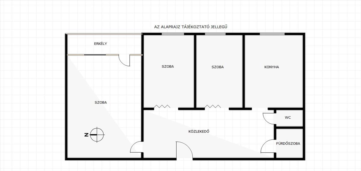 Jó elrendezésű ingatlanban a 3 szoba mindegyike külön nyílik és a fürdőszoba - mosdó is külön helységben kapott helyet.