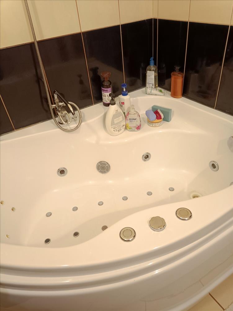 A fürdőszobában luxus fürdőkáddal  wellness élmény várja. . . . . . . Otthon!