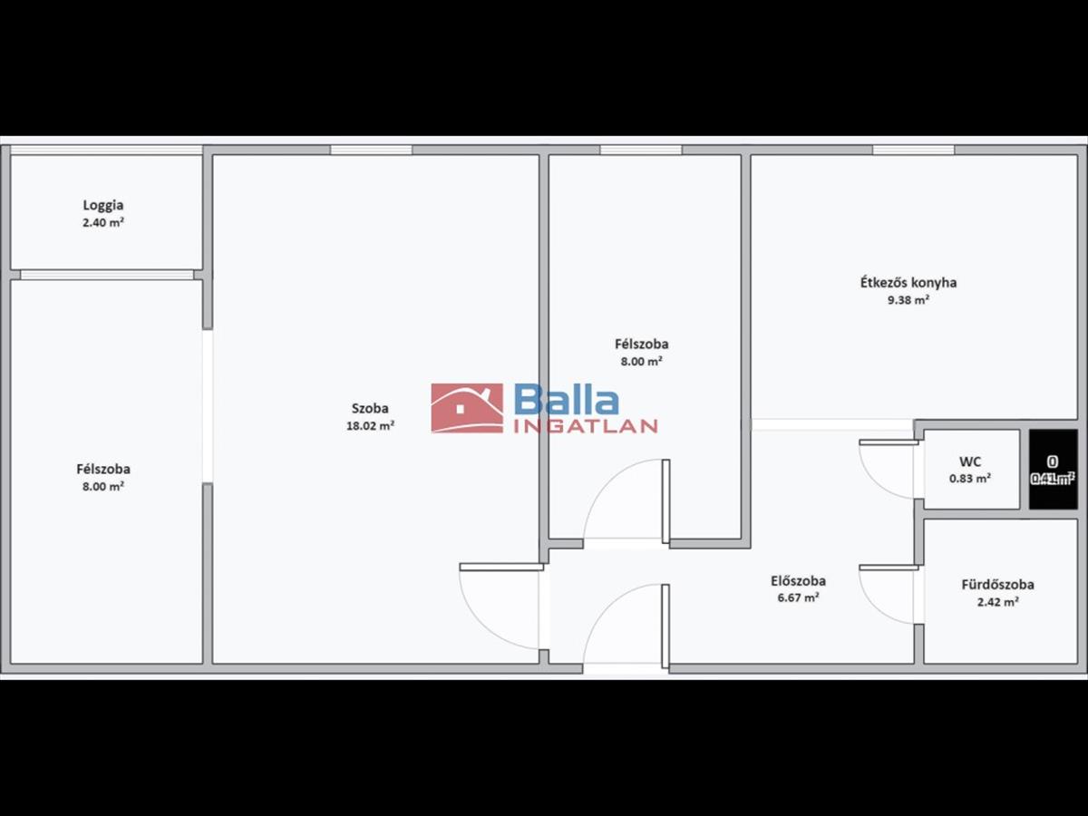 A félszobához 3 négyzetméteres loggia tartozik.