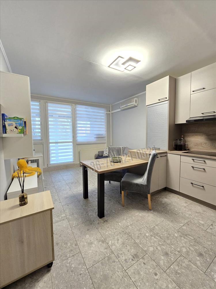 Az ingatlan egy négyemeletes társasház földszintjén helyeszkedik el. a lakás a felújításon túl, át is lett alakítva. a nagyszobában került kialakításra a konyha, így egy szobával, nappali-konyhával még élhetőbb lett az ingatlan. a régi konyha jelenleg a gyermek szoba.