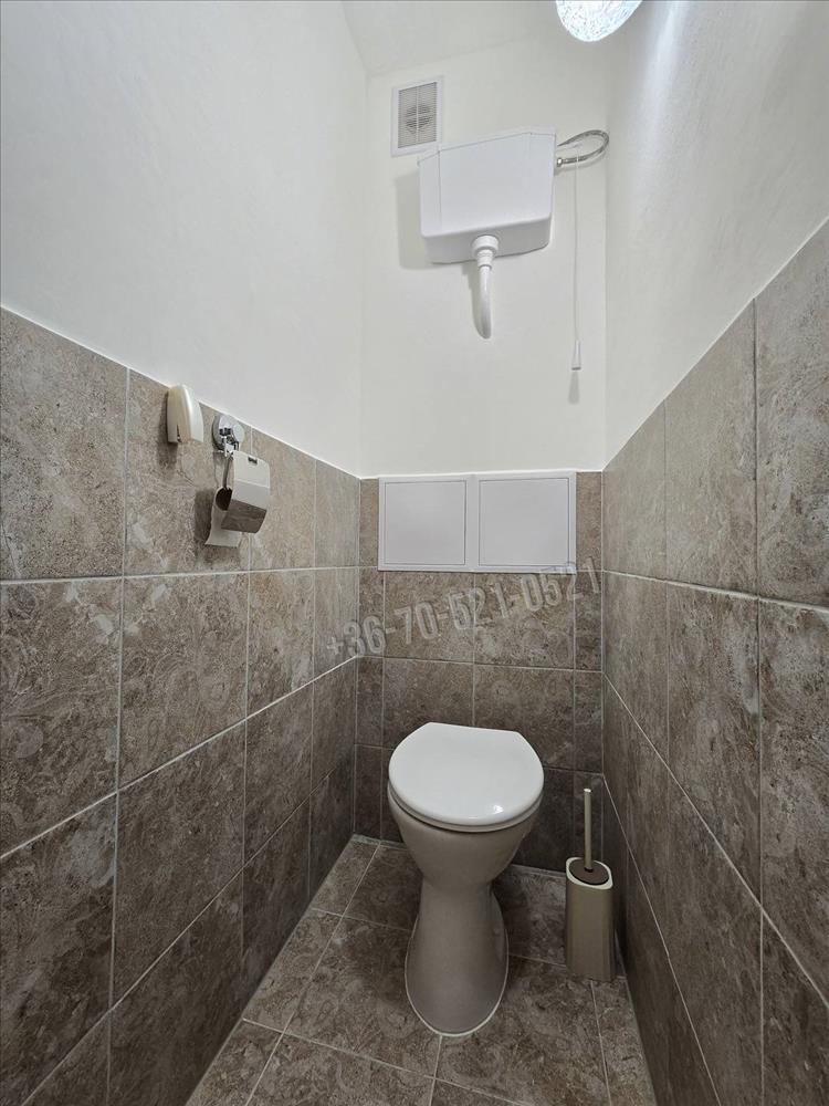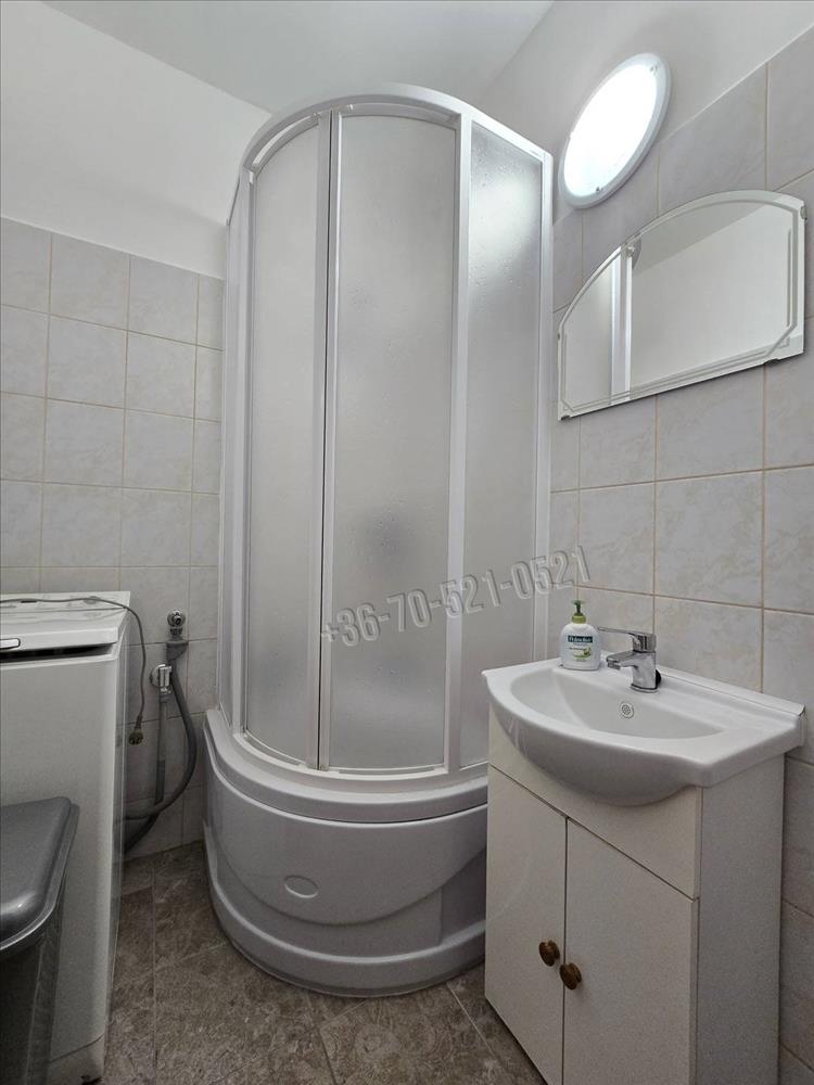 Fürdőszobában zuhanyzó lett kialakítva, így megfelelő hely áll rendelkezésre a mosógépnek és fürdőszoba szekrénynek is. Illemhelyiség, külön légtérben található.