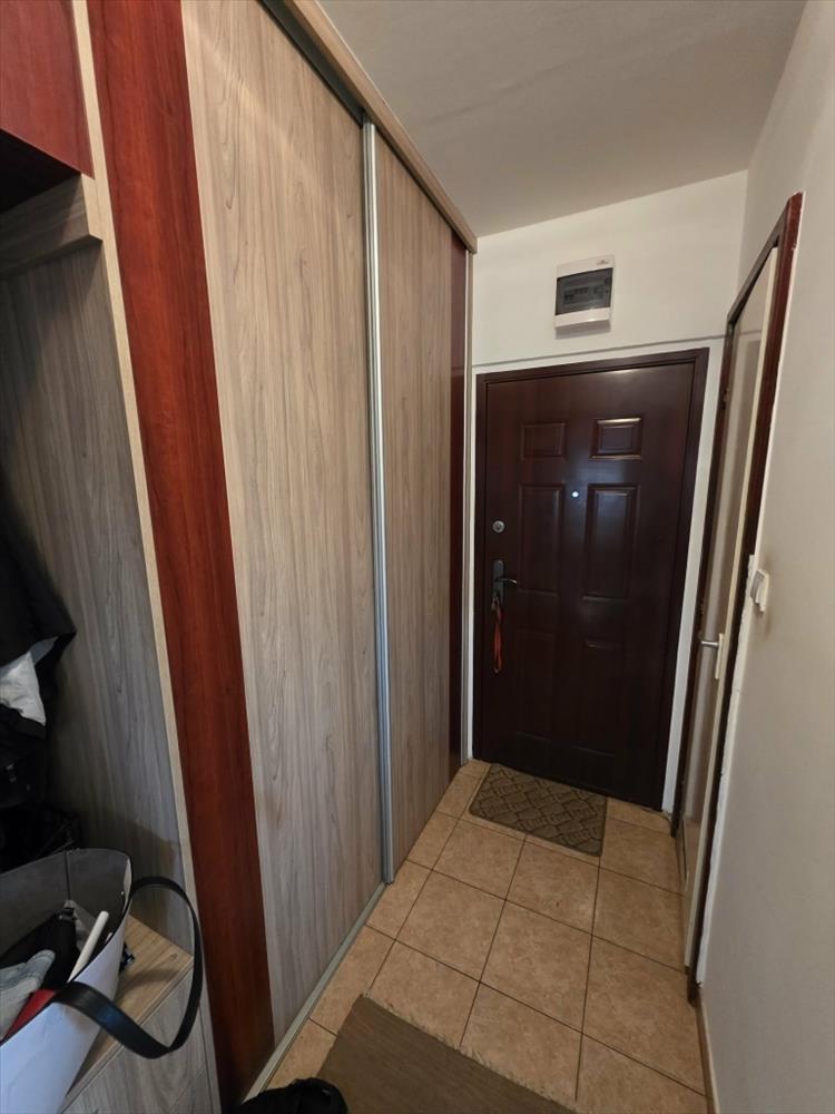 Az előszobában található beépített szekrény modern külsőt kapott, amely praktikus tárolási lehetőséget biztosít és tovább növeli a lakás komfortérzetét.