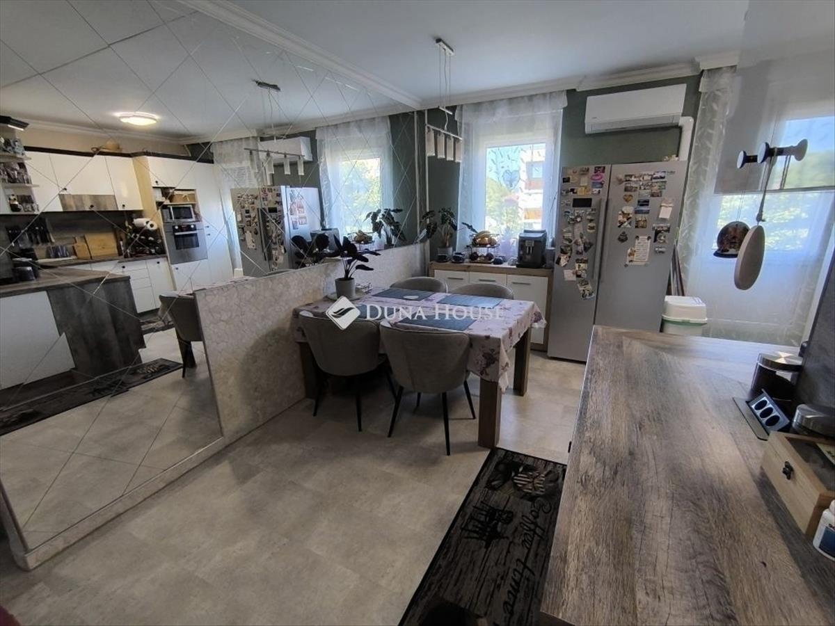 Eladó Pécsett-Rózsadombon a Fagyöngy u-ban egy 3. emeleti, 74nm -es, erkélyes, (3, 5 szobás átalakított) 3 külön nyíló szobás panel lakás. a lakás teljesen felújított észak-déli tájolású. a konyha és a félszoba közötti válaszfal bontását követően egy nagy, 16 m2- es konyha - étkező lett kialakítva, modern bútorral, indukciós főzőlap + sütő és mosogatógép is van. Az épület szigetelt, műanyag nyílászárókkal ellátott. Fűtése távfűtés költségmegosztóval. Elrendezése kiváló nagy előszoba beépített szekrénnyel. a fürdő teljes körű felújításon esett át a megszokott egy csaptelep mellé beépítésre került egy kádtöltő zuhany váltós csaptelep is. Műanyag bejárati ajtó lett beépítve valamint a beltéri ajtók is cserélve lettek. a folyosón a konyhában étkezőben vinyl padló van. Szobában az eredeti laminált padlóra padlószőnyeg került. Minden ablakon redőny és szúnyogháló van. Az erkély tavasszal lett felújítva. Új szúnyoghálós redőny és padlóburkolat került ide is. Minden szobába és az étkezőbe tavasszal prémium kategóriás huzatmentes klíma lett telepítve. Az alagsorban van egy 2 lakás által használt nagy tároló is. Az ingatlan közelében buszmegálló (50m), bolt, posta, iskola, óvoda, orvosi rendelő, gyógyszertár található. a berendezési tárgyak alku tárgyát képezik. Amennyiben felkeltette érdeklődését, keressen bizalommal!