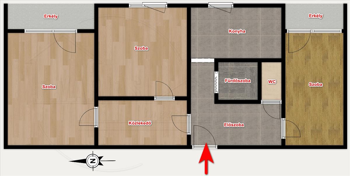 -63 m2: 3 szoba, konyha, fürdőszoba, wc, előszoba, közlekedő;