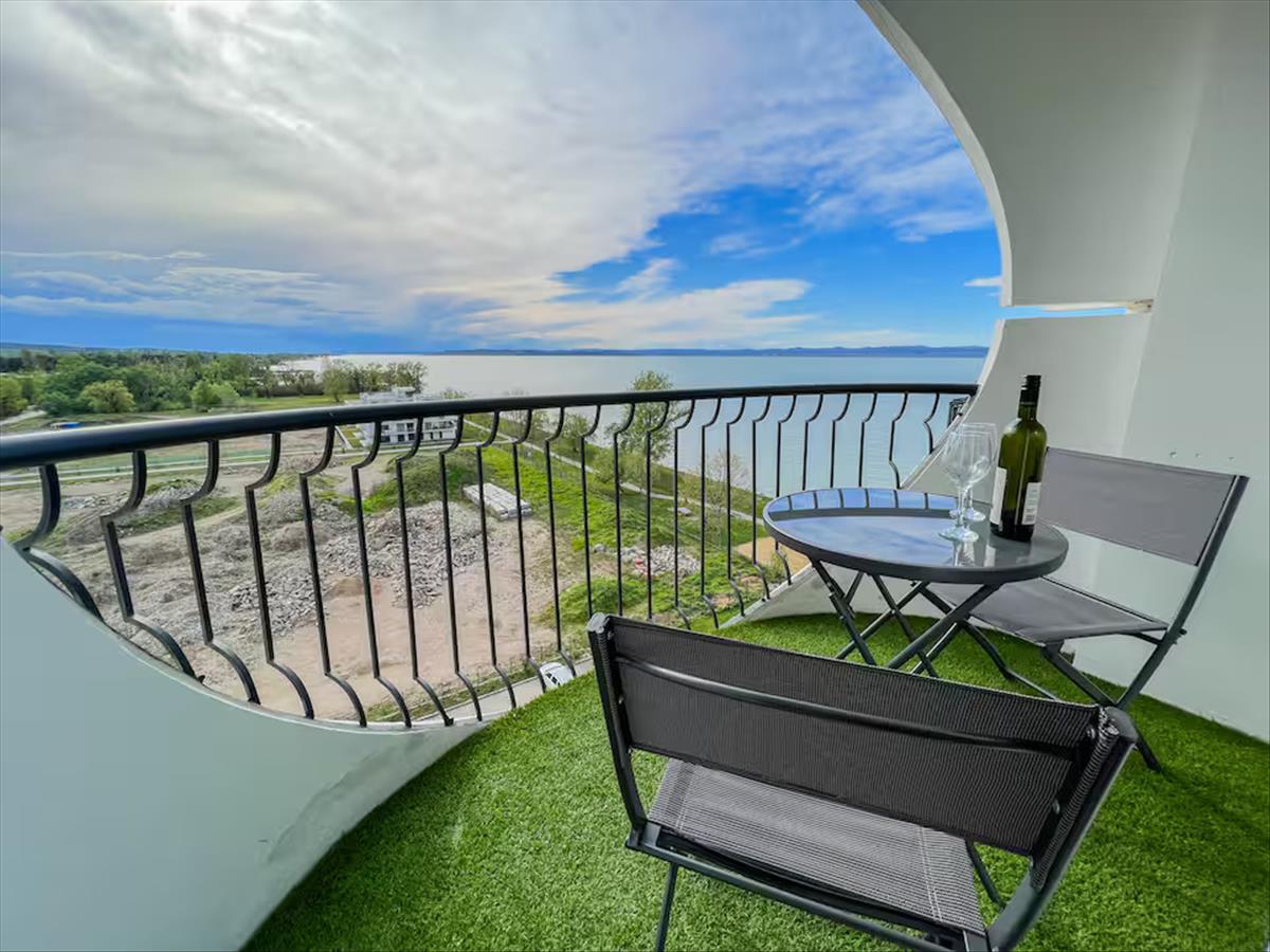 A lakás a 7. emeleten található, így a balatoni panoráma zavartalan és garantált, az erkélyekről egész évben élvezhető a tó látványa.