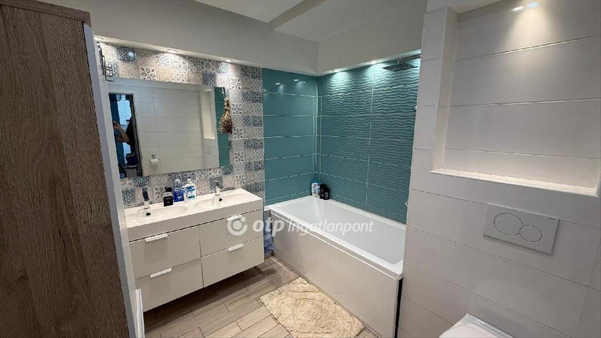 Az eredeti fürdőszoba és wc elbontásra került, az eredetihez képest dupla méretű fürdőszoba, dupla mosdóval. Külön mosókonyha, ahol egy második wc is helyet kapott