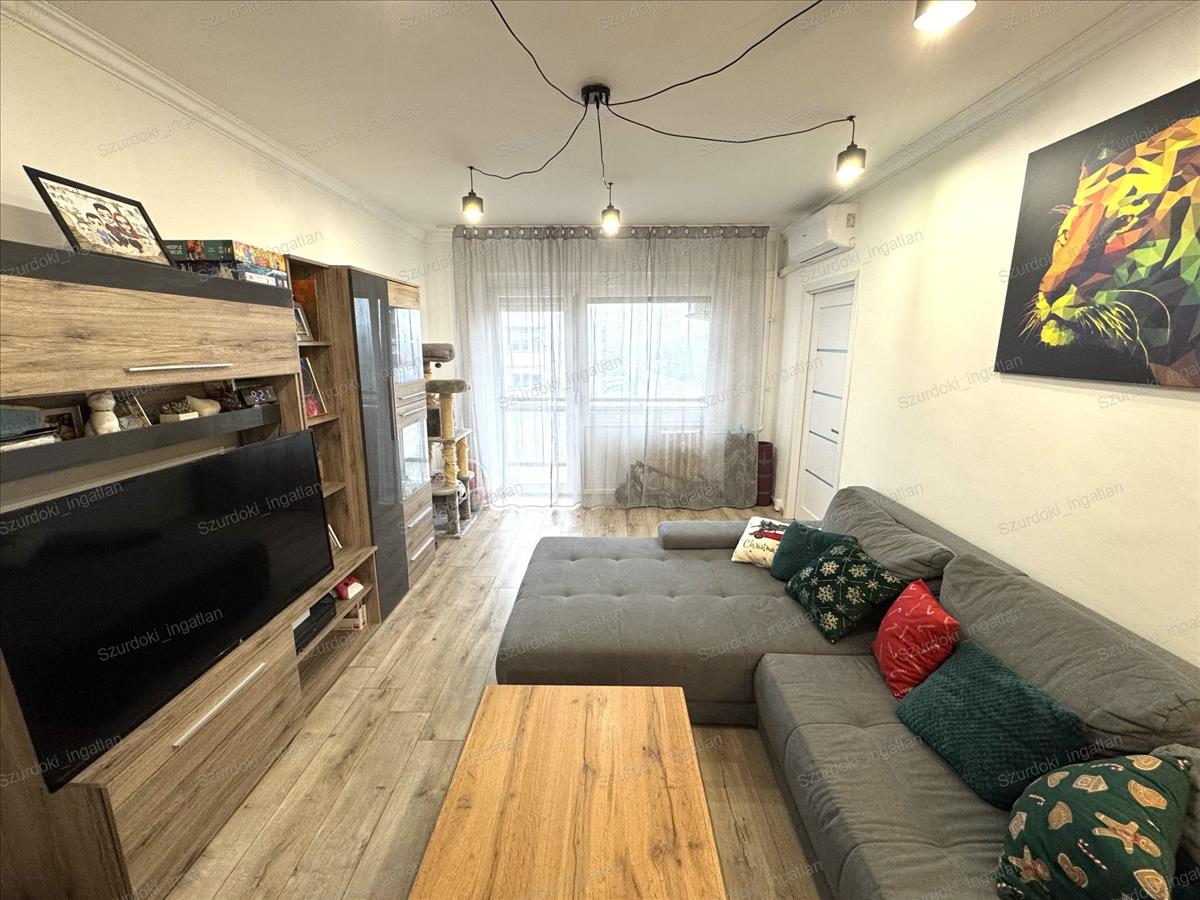 -Elosztás: étkezős konyha + 3 hálószoba + nappali + erkély, külön illemhelyiség és fürdőszoba
