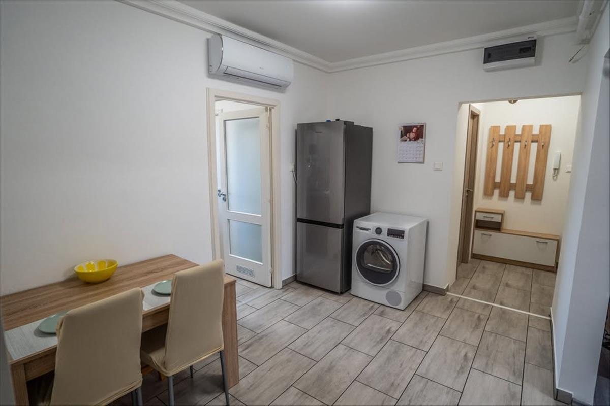 A konyha beépített mosógéppel és mosogatógéppel felszerelt.