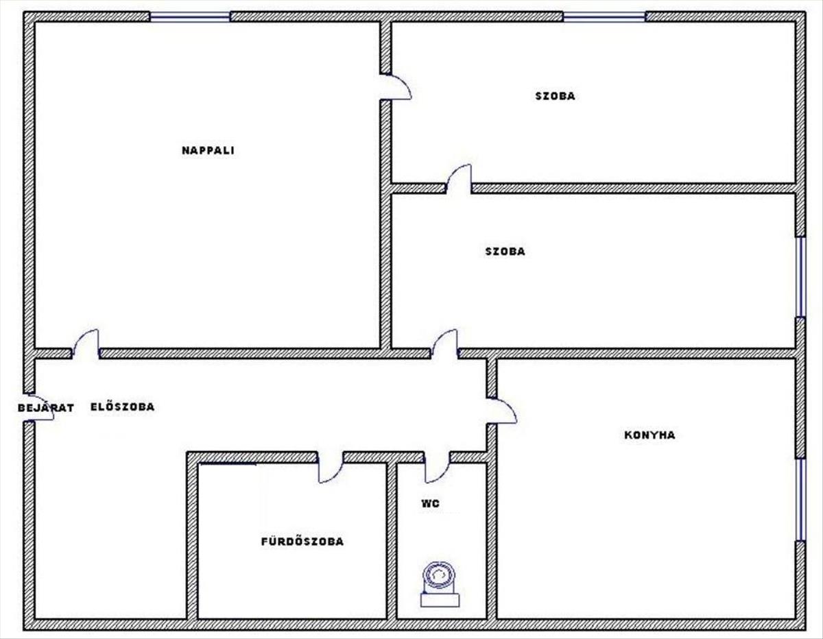 A lakás elosztása praktikus: nappali + 2 külön nyíló hálószoba, konyha, előszoba beépített szekrényekkel, kádas fürdőszoba és külön wc. a szobák körbejárhatók, ami jól alakítható életteret biztosít. Az ablakok zöldre, parkos környezetre néznek, így a lakás világos és kellemes hangulatú.