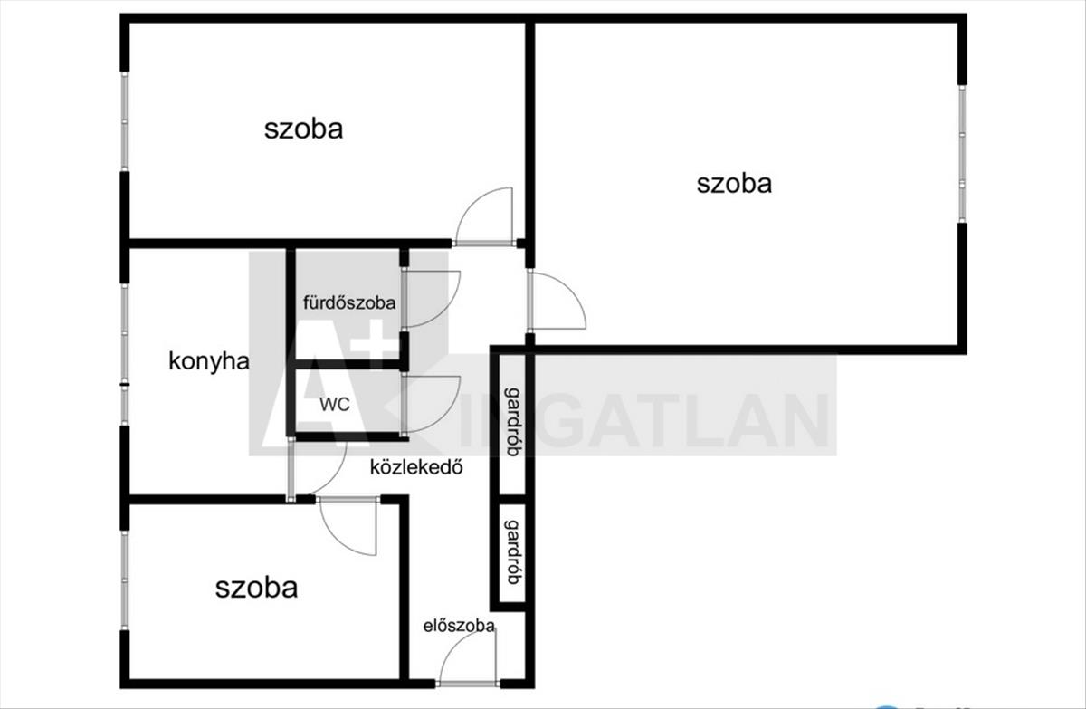 Elrendezését tekintve : 3 külön nyíló szoba, előszoba és közlekedő, praktikus gardrób szekrényekkel,