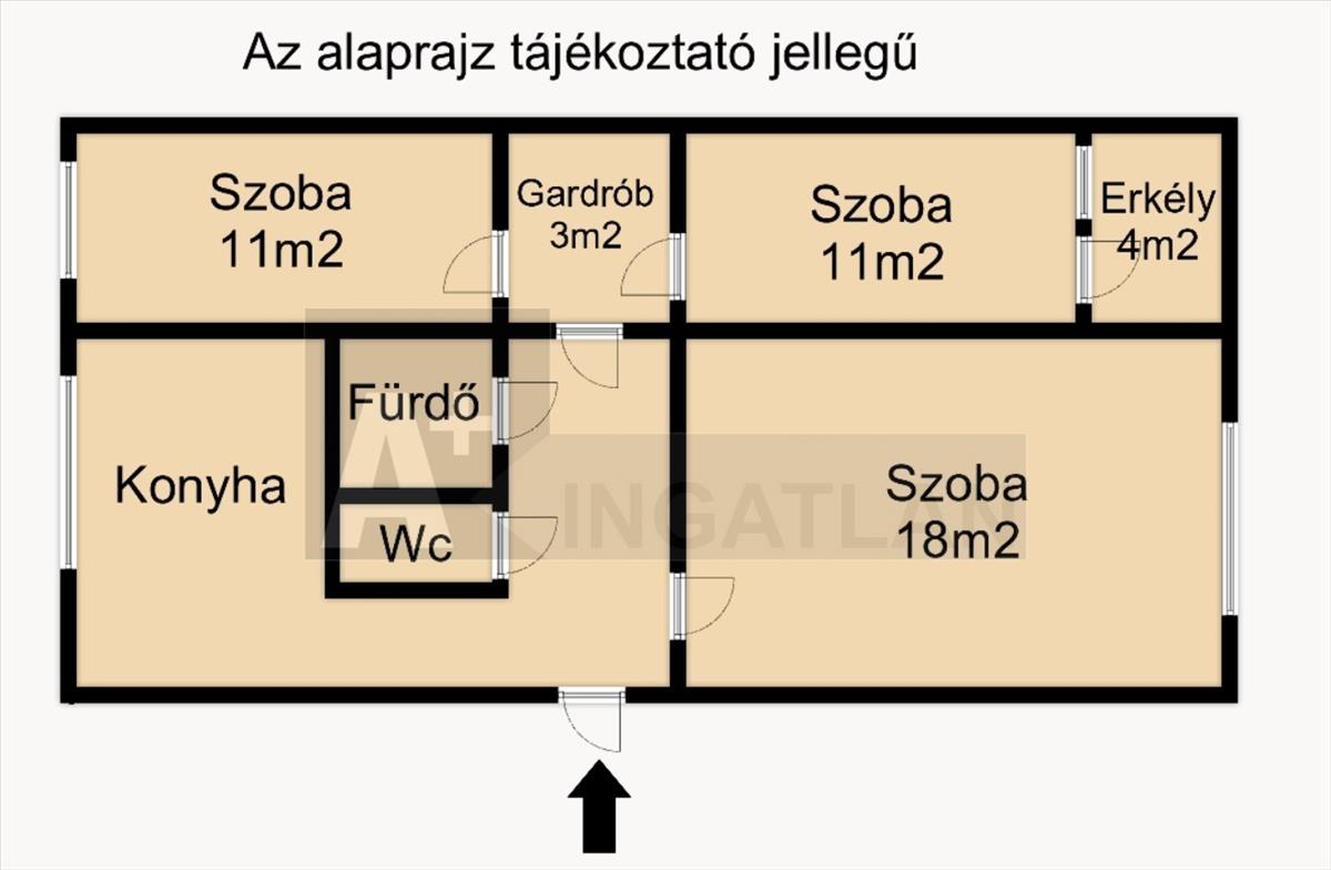 - 60 m2: 2+1 szoba. Mindhárom szoba külön nyíló.