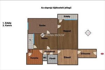 Az ingatlan nappali + 2 külön nyíló szobás, elrendezése rendkívül praktikus, tágas és világos terekkel: