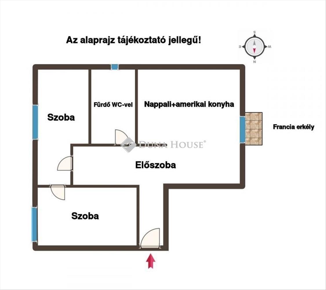 A lakás elrendezése praktikus: egy világos nappali amerikai konyhával, valamint két külön nyíló szoba áll rendelkezésre, így ideális lehet fiatal pároknak, kisebb családoknak vagy akár befektetési célra is. a nyugati tájolás kellemes fényviszonyokat biztosít a délutáni órákban, a francia erkély pedig tovább növeli a lakás hangulatát.