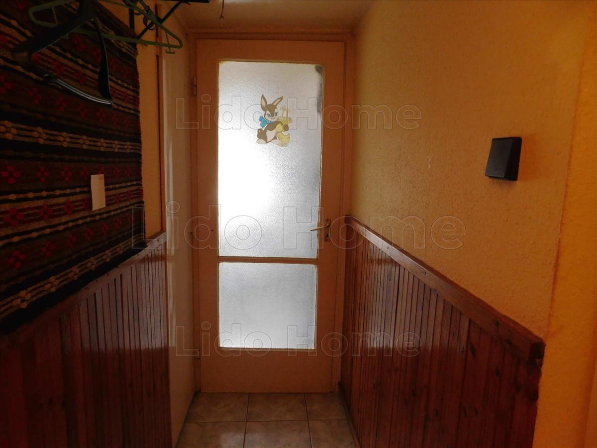 Elosztás: a bejárati ajtó cserélve lett, több ponton zárodó, belépve rajta található az L alakú folyosó, amely két végében található az egy-egy szoba, a folyosót a konyha zárja. a folyosó közepén található a fürdőszoba, amely bejárata harmonika ajtó, amelynek előnye, hogy nagyobb hely van igy a folyosón, a fürdőben kád található. a fürdőszobától külön helyiségben található a wc.