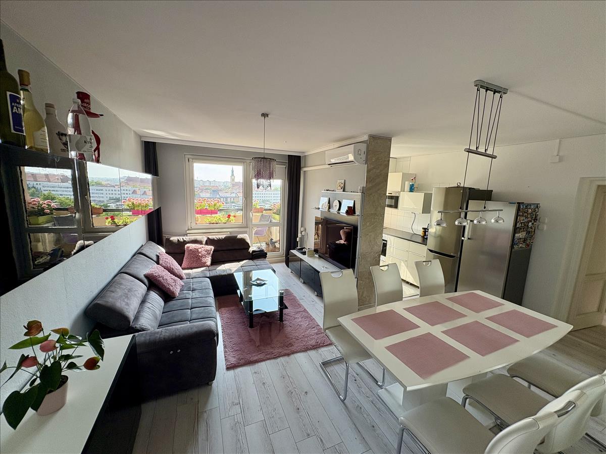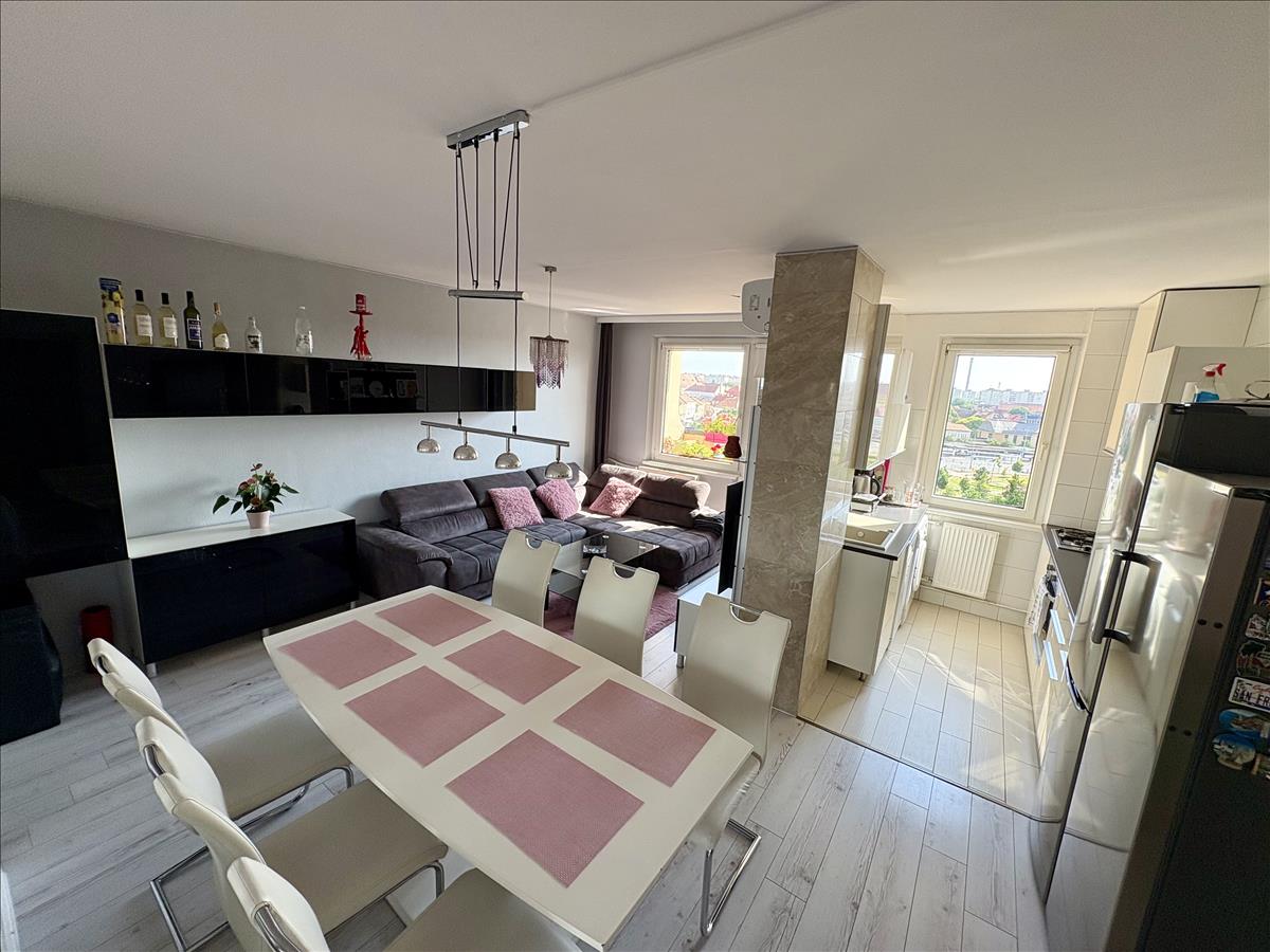 A lakás világos, napfényben fürdik egész nap, a szobák DNY-i, a konyha és a nappali ÉK-i tájolásúak. Az erkélyről lenyűgöző panoráma nyílik a belvárosra, beleértve a Bazilikára is. a lakás modern, gépesített fél amerikai konyhával, új nyílászárókkal, szigeteléssel, valamint teljesen felújított fürdővel és wc-vel rendelkezik. a teherliftnek köszönhetően, nagyobb bútorok is szállíthatóak. a környék bevásárlási szempontból is ideális. McDonalds, Media Markt, Tesco, városi piac 100 méteren belül. Emellett a buszpályaudvar is 100 méterre van így a közlekedés is rendkívül egyszerű. a szabadidő eltöltésére is kiváló lehetőségek vannak: néhány perc sétára találhatók a Palotavárosi tavak és a mellette lévő szabadidő központ. a sportolni vágyók számára 2 edző-és fittnessterem is elérhető 300 méteren belül.
