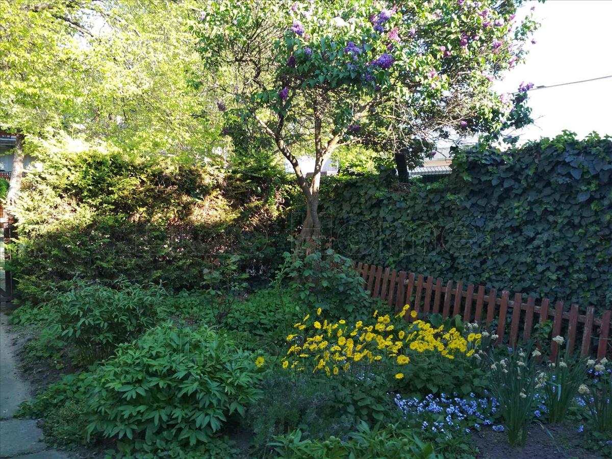 -saját használatú kertrész, gondozott udvar fákkal és virágokkal