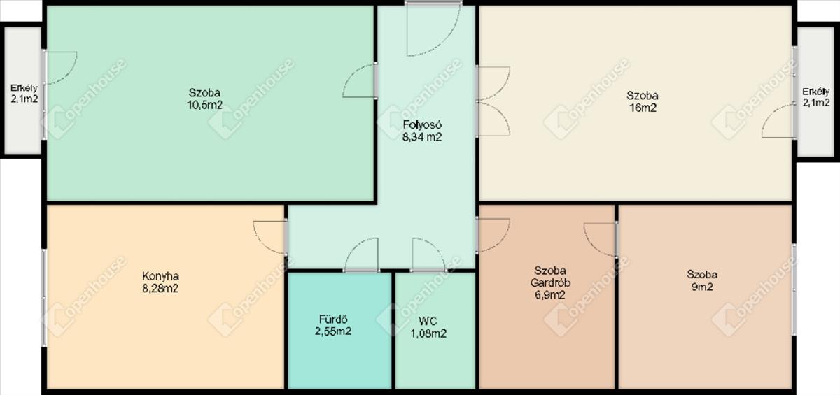 3 szoba + 1 + konyha + közlekedők + fürdő + különálló WC