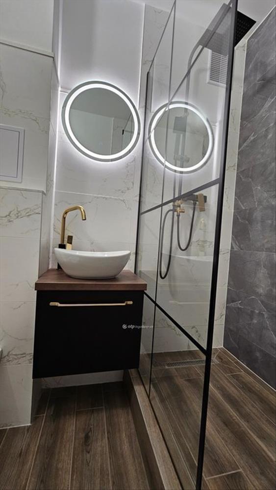 A 47m2-es lakás minden helyiségében meleg barna famintás padlóburkolat fut végig, amely egységes és barátságos alapot ad az enteriőrnek. a konyha különleges karakterét a fekete és arany színek elegáns kombinációja, valamint a meleg fa hatású felületek adják, az új konyhabútorba pedig modern, beépített gépek kerültek. a fürdőszoba letisztult, kortárs hangulatú, ahol a szürke és fehér csempék harmonikusan egészülnek ki fekete - arany bútorokkal és csaptelepekkel, prémium megjelenést teremtve. Az egész lakásban új, modern led lámpák gondoskodnak a fényes, csillogó, mégis kellemes atmoszféráról.