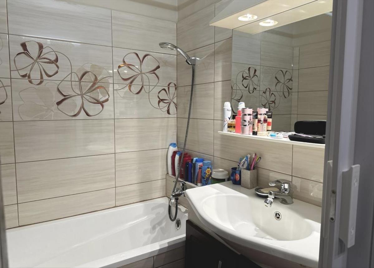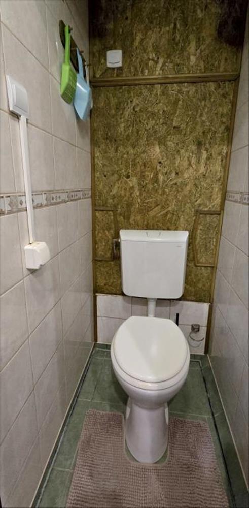 A fürdőszoba 6 éve teljes felújításon esett át: új csövek, új járólap és csempe került beépítésre; a kádnál szerelőablak segíti a karbantartást.