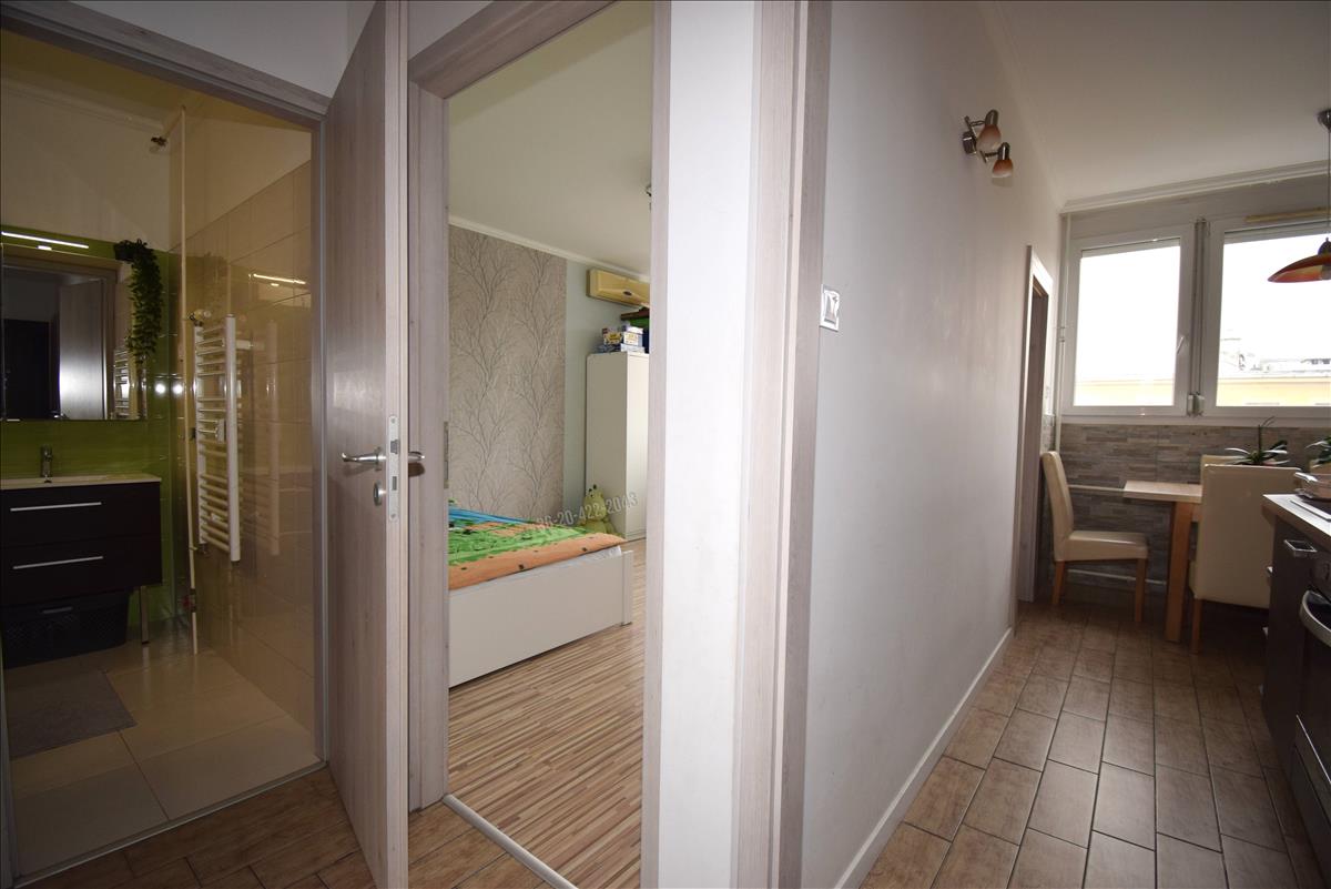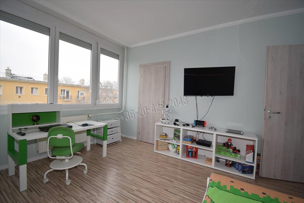 A lakást teljesen felújították 2019-ben, új biztonsági bejárati ajtót, klímát, víz és villanyvezetékeket, új konyhabútort építettek be, valamint új burkolatokat is kapott a lakás.