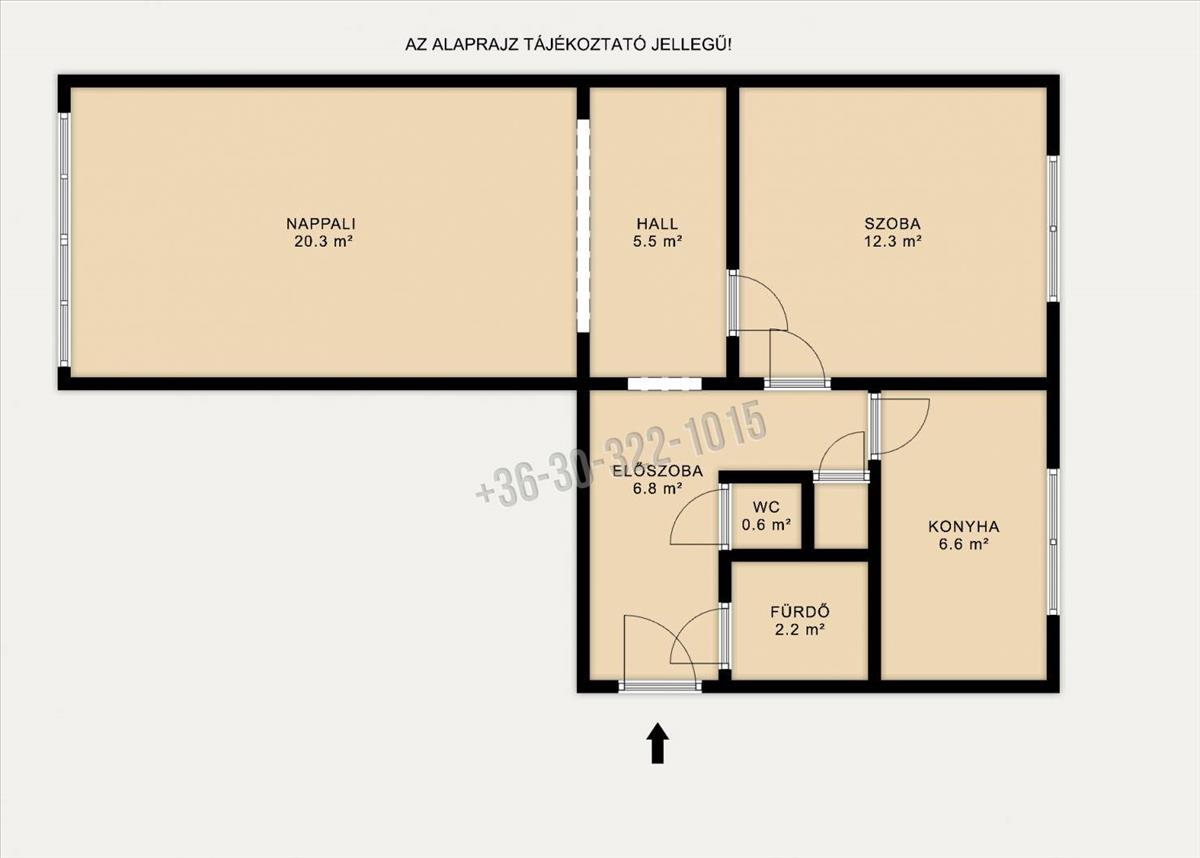 Az ingatlan elrendezése jól átgondolt: tágas nappali, külön nyíló hálószoba, külön konyha, fürdőszoba, wc és előszoba alkotják.