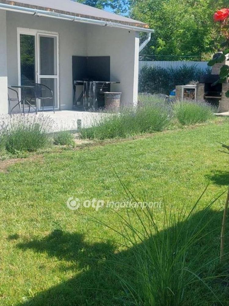 Az udvar rendezett, virágokkal és fákkal beültetett, parkosított, ahol megtalálható egy beépített flekkensütő, bográcsoló és egy napelemmel fűthető medence és csodaszép kis kerti tó. a medence megegyezés alapján maradhat. Továbbá található egy 16nm tároló, ahová kerékpárt, kerti szerszámokat, a grill sütő kellékeit be lehet tenni. Az ingatlan biztonságát riasztóberendezés és térfigyelő kamerák segítik.