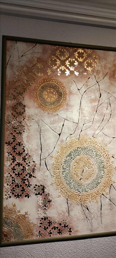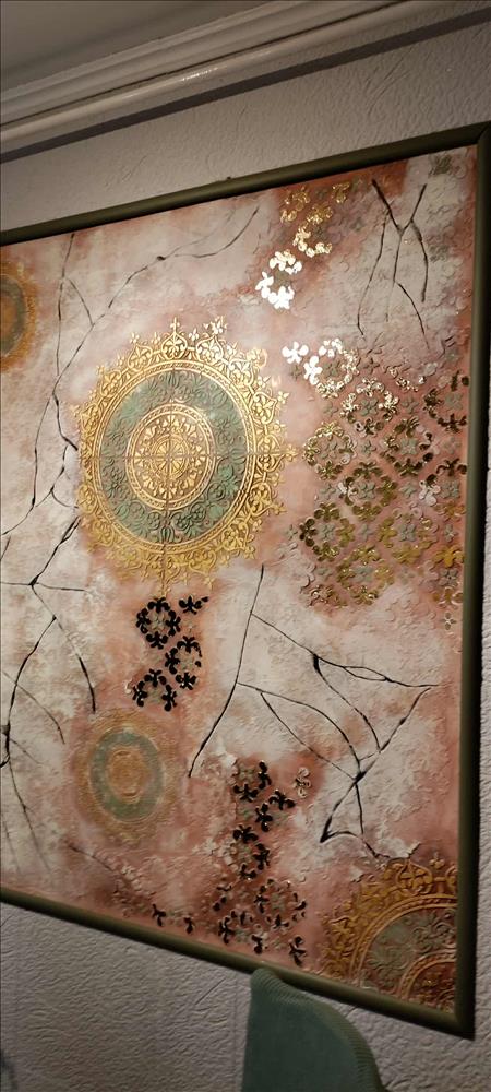 Az előtérben és a közlekedőkben egyedileg készített fehér dekortégla van, gyönyörű fémes dekorfal (1 nagy+2 kisebb)