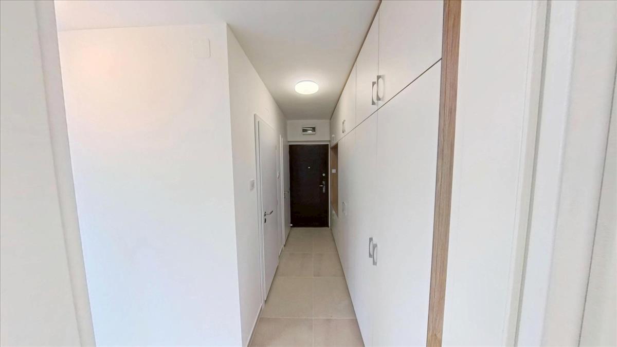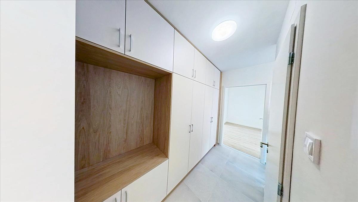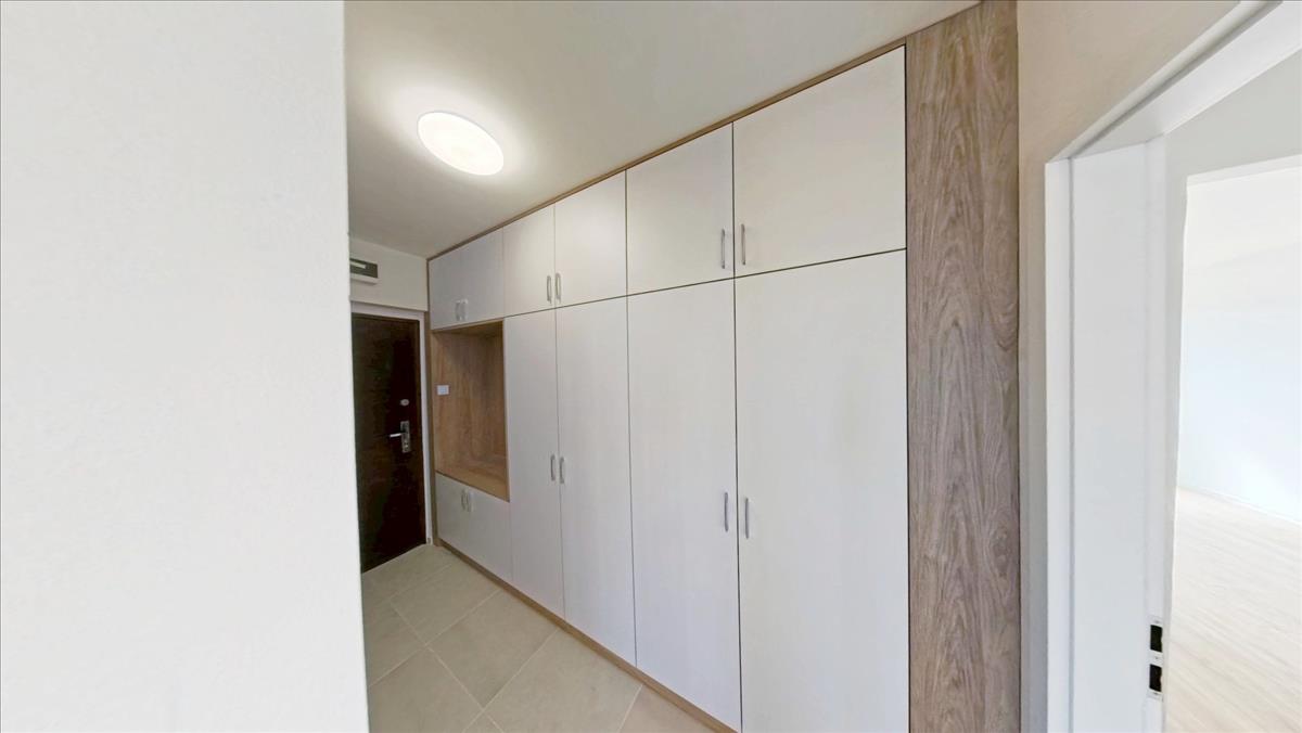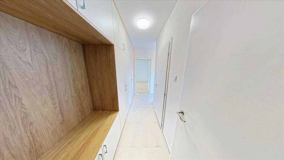 A lakásba belépve egy közlekedőbe lépünk be. a közlekedőben teljesen megújult, mennyezetig érő beépített szekrény segít a tárolásban. Jobbra az új wc van. Mellette az igényesen felújított fürdőszoba található, ahol a fűtést a távfűtésbe bekötött, nagyméretű törölköző szárító biztosítja. a közlekedő végében a nappali-hall kapott helyet. a nappaliból pompás kilátás nyílik a várra és a Margit templomra. a közlekedőből jobbra fordulva a hálószobába érkezünk, mellette a konyha van.