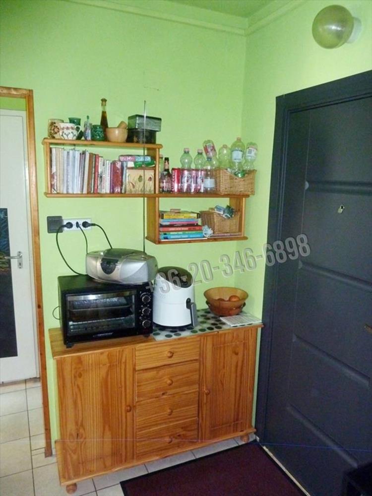 A konyhában, a tulajdonos elektromos főzőlapot használ, a gázvezeték maradt, egy gáztűzhely bármikor beszerelhető.